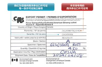 官方许可: 出口许可证 (CITES) 由加拿大环境部签发
