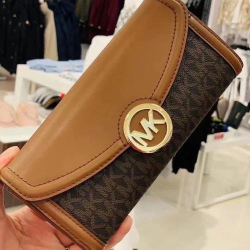 Michael Kors(MK) 深色 老花 logo 长钱包 35F9GFTE3B Brown (一箱只能放一盒)