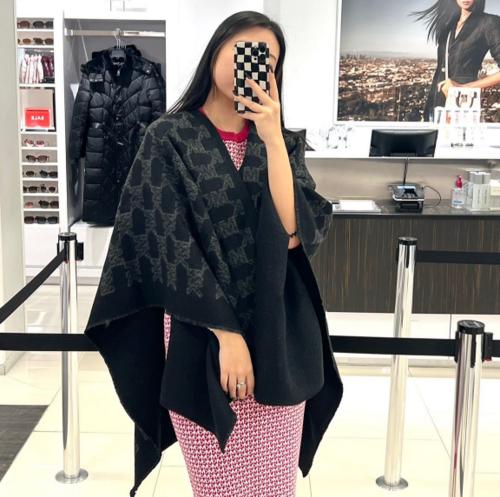 Michael Kors(MK) 黑色+枣红色 字母 双面披肩 大围巾 538556(一箱只能放一条)